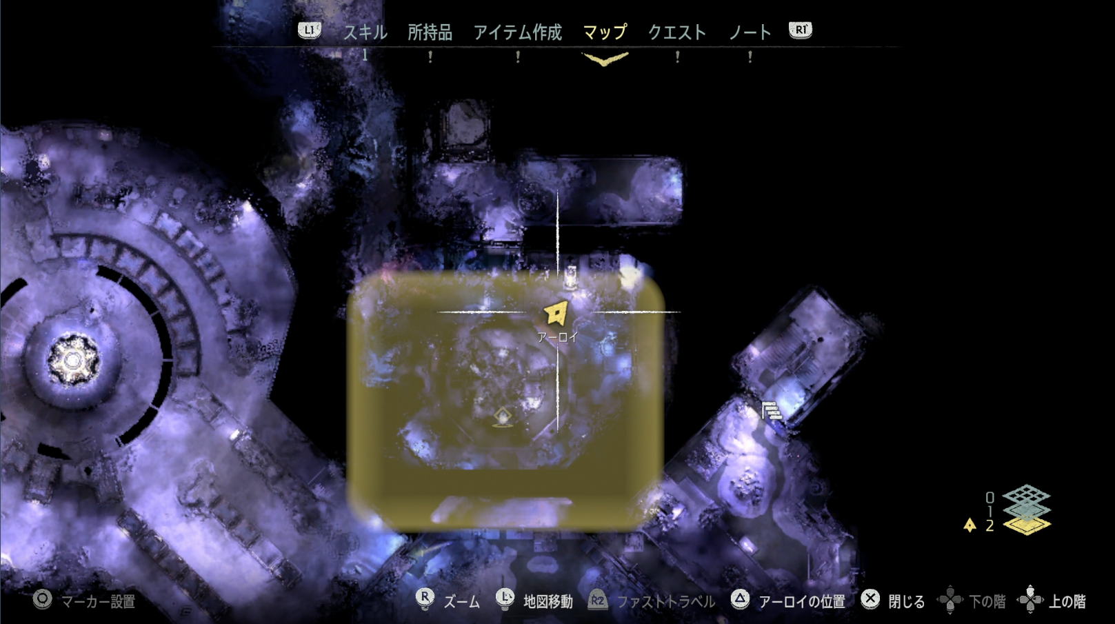 場所はメインクエスト『地中に眠る謎』の施設の地下2階。