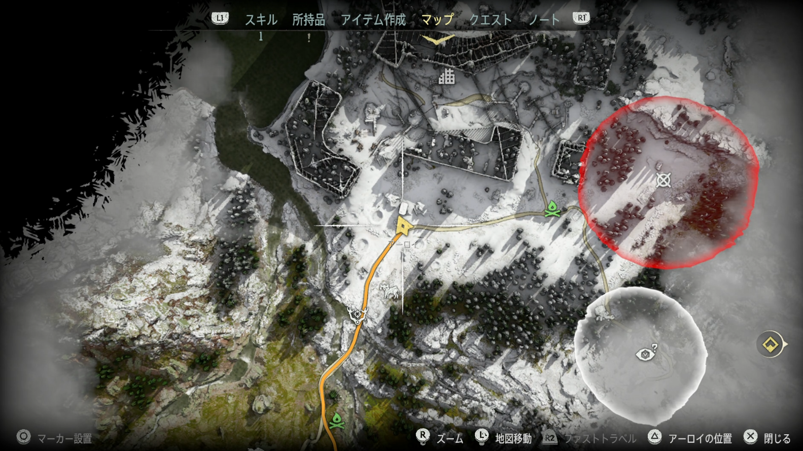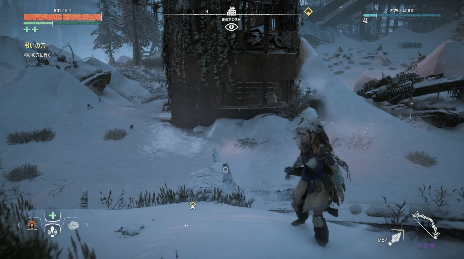 場所は創造主の落日アイコンの下辺り。小さな廃墟の前。