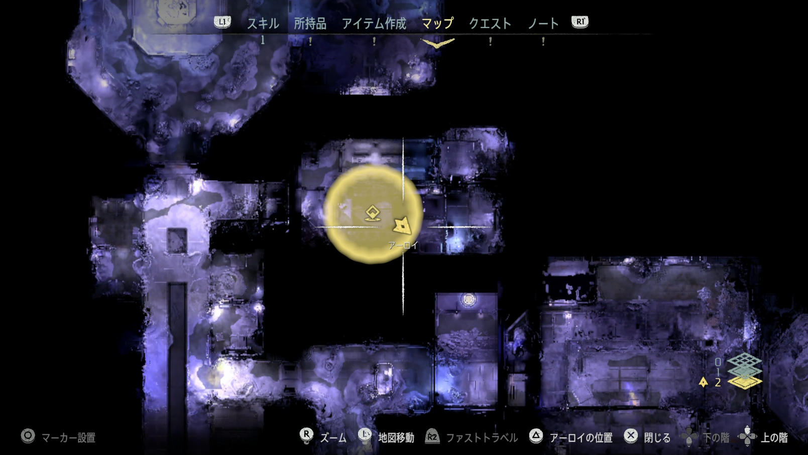 場所はメインクエスト『地中に眠る謎』の施設の地下2階。
