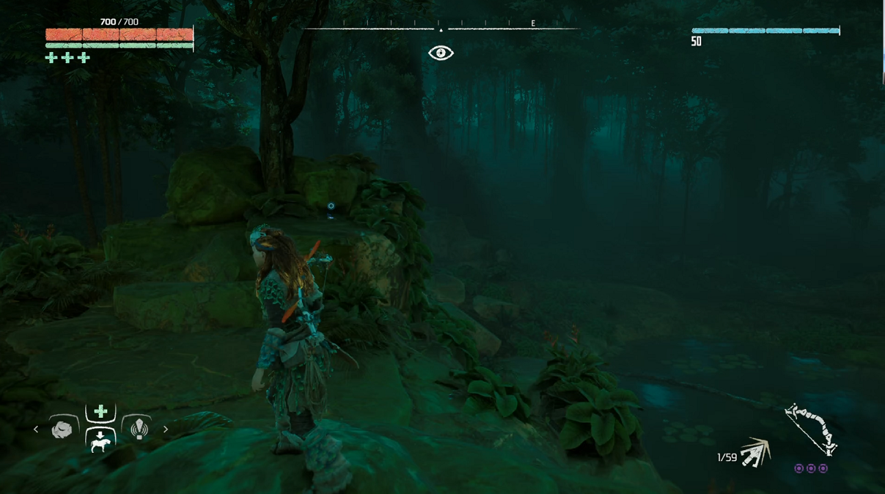 水たまりのすぐそばの岩の上。