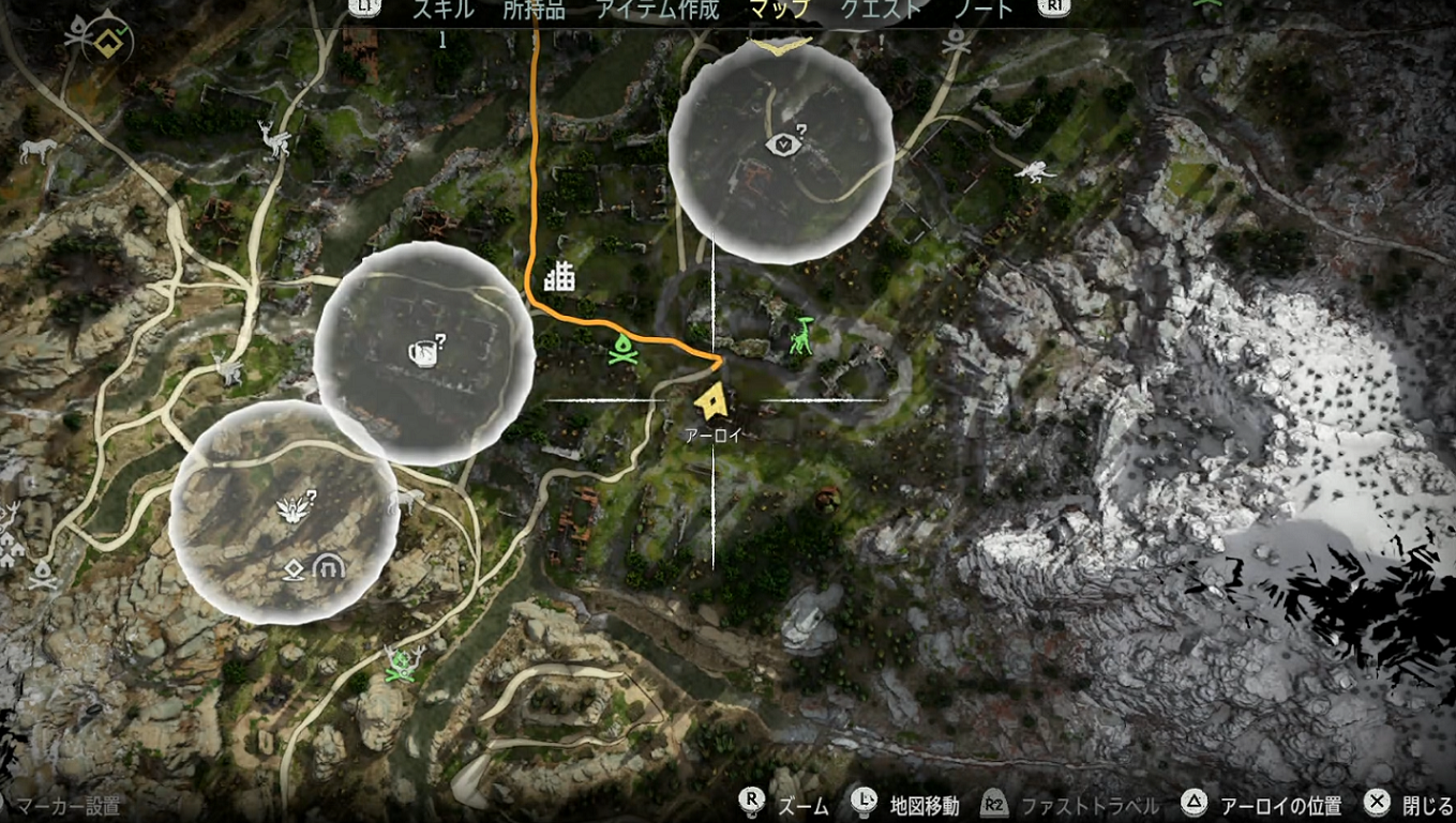 場所は全体マップで悪魔の渇きのアイコンから少し右下の位置。建物の陰。