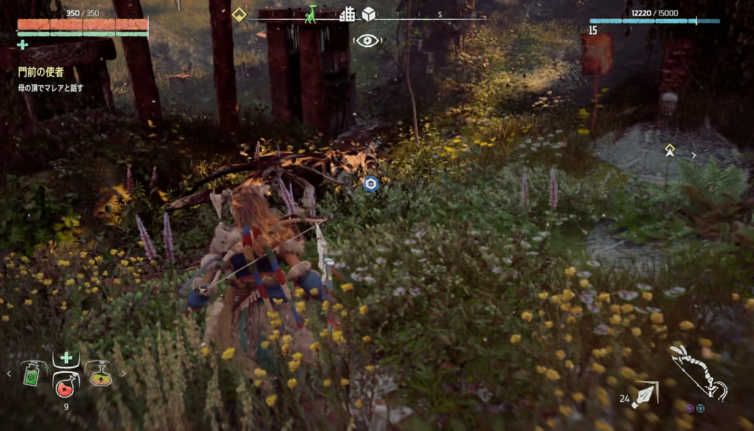 グレイザーの群れの位置の少し右上。マップ上では茶色い建物。