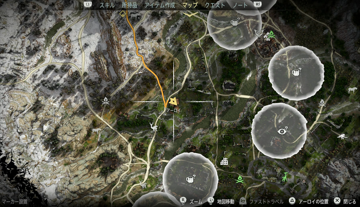場所は全体マップで悪魔の渇きのアイコンから左上。