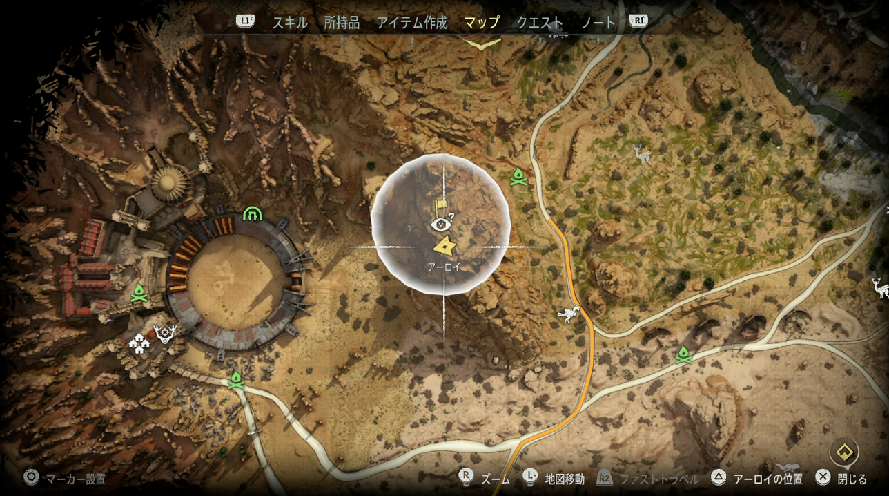 場所は全体マップ左側の落陽の砦の右上辺り。
