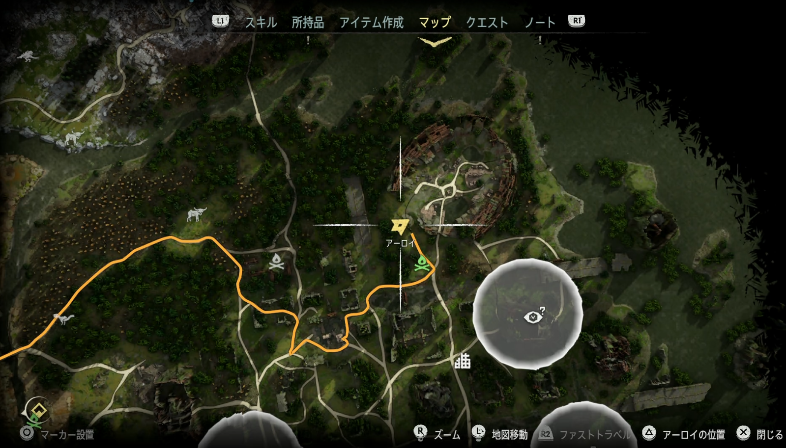 場所は全体マップで悪魔の悲しみのアイコンから少し左上の位置。たき火の上。岩の陰にある。