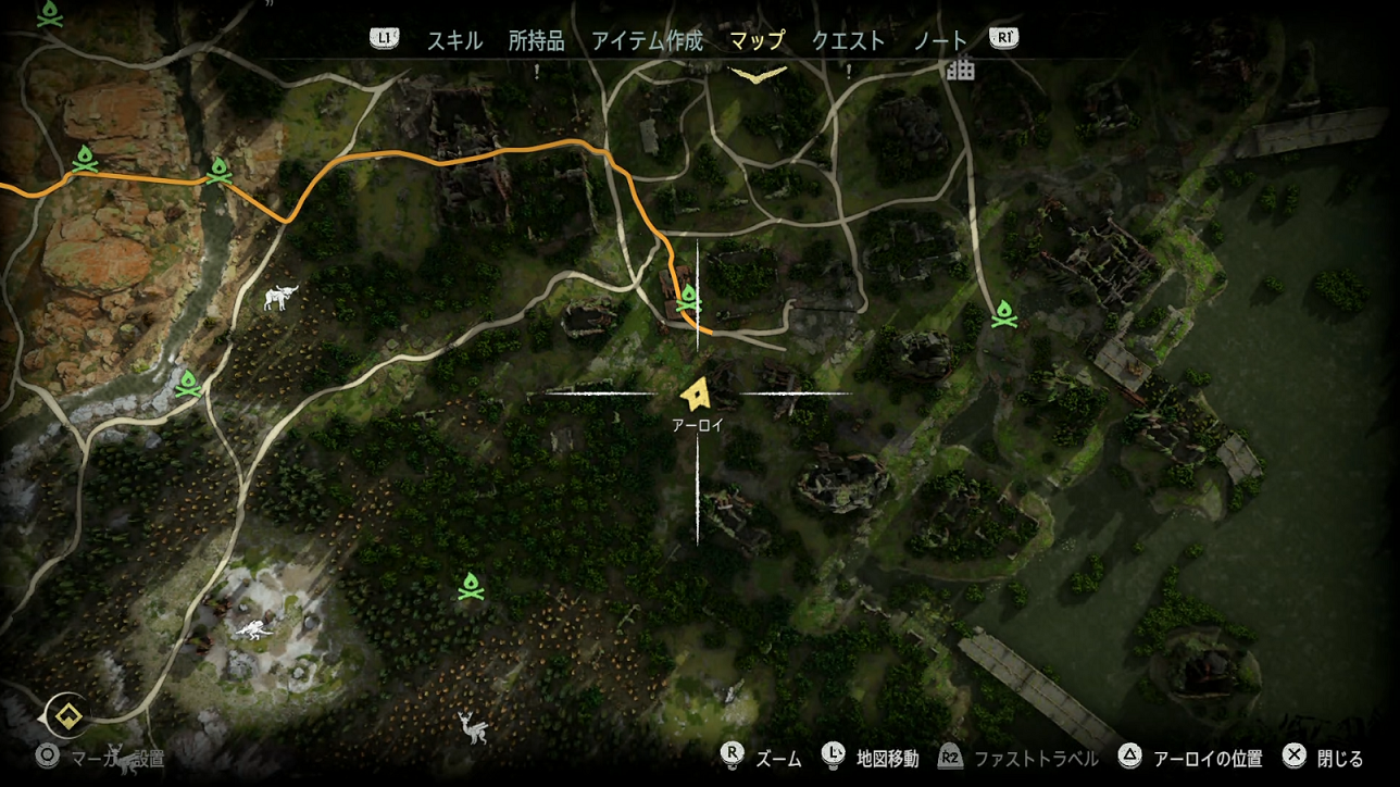 場所は悪魔の悲しみの左下のたき火付近。