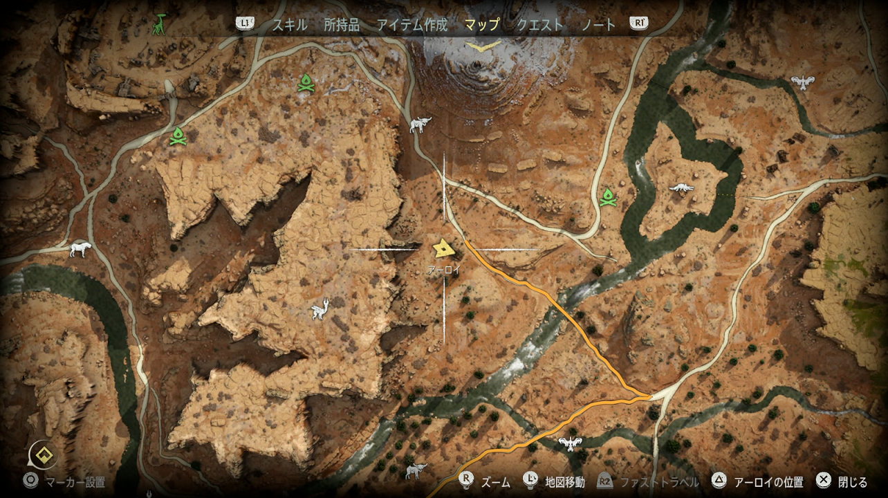場所は全体マップで狩場:砂岩の大河から真上辺り。