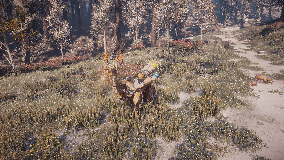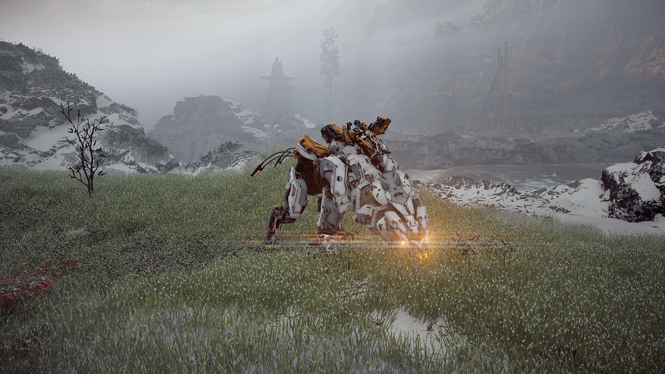 | シェルウォーカー | ホルダー ライトニングガンへ破砕 発電装置 シールドクローへ破砕 | 鉤爪による攻撃 ライトニングガンによる射撃 | シャード 鉄容器 冷却水 点火装置 ワイヤー 機械のコア(中) 輝く編み目 シェルウォーカーのレンズ シェルウォーカーの心臓 | ホルダー ライトニングガン 発電装置 シールドクロー | 青いシールド カニのような見た目 ホルダーを破壊するとコンテナから物資を回収できる | +1050 | RHO |